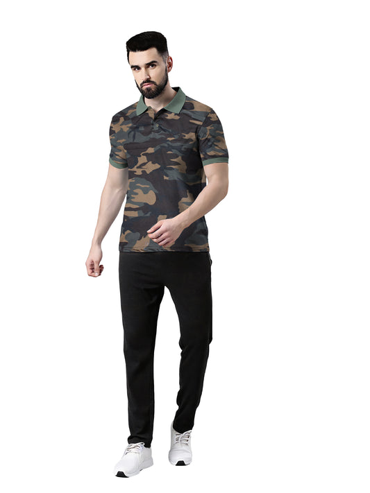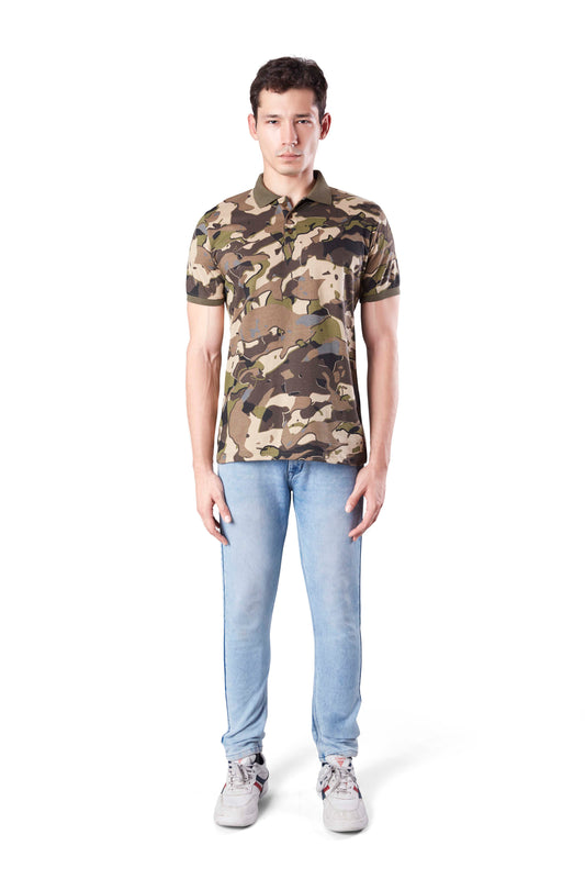 Wild Camo Men Military Camouflage Polo Neck Pure Cotton Multicolor T-Shirt