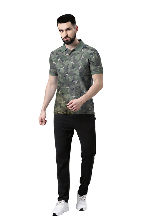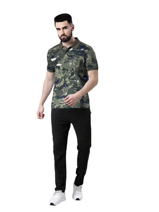 Wild Camo Men Military Camouflage Polo Neck Pure Cotton Green T-Shirt